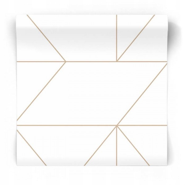 Tapeta Biala W Zlote Brazowo Rude Linie Trojkaty Sklep Dekoori